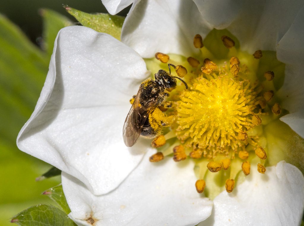 Pollinating bees could provide an effective way to apply fungicide to strawberries.